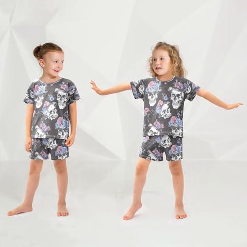 senya Short Sleeve Pajamas Sets Summer Cotton Sleepwear Skulls with Floral Hats 4