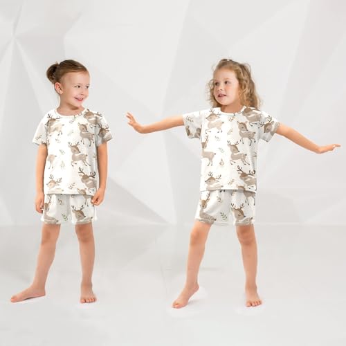 ALAZA Cartoon Deer Leaf Pajamas Short Sleeve 2 Piece Sleepwear Top and Bottom Pajama Set Unisex 6