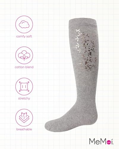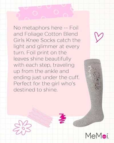More information about MeMoi Foil and Foliage Cotton Blend Girls Knee Socks Light Gray 8