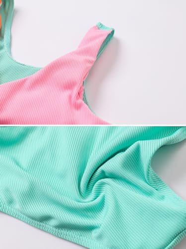 J.E Sterguard Two Piece Swimsuits Teen Bikini Color Block Girls' Swimwear Ribbed Swimsuits Size 8-16 4