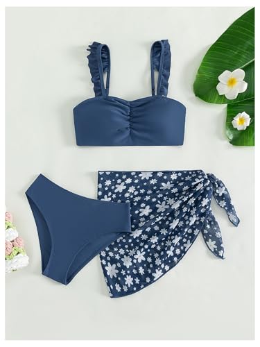 GORGLITTER Girl's Swimsuit Cute 3 Piece Floral Ruffle High Waisted Thong Beach 2025 Bikini Set with Coverup Skirt 3