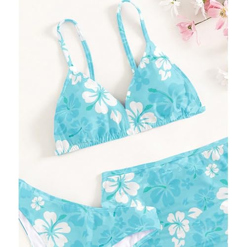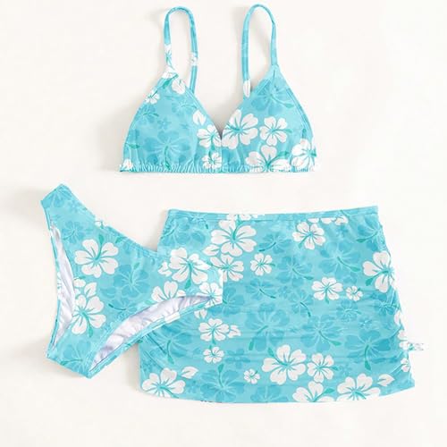 Girls Swimsuit 3 Piece Sets Cute Floral Print Bikini Bathing Swim Suits Comfy Summer Beach Skirt Cover Up Outfits 3