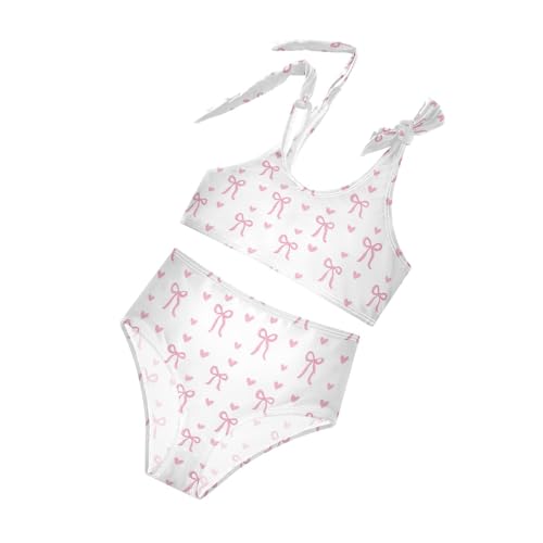 Wusikd Pink Bows Girls Swimsuits Two Piece Hearts Ribbons Swimwear Bikini Set for for Girls Size 11-12T 2