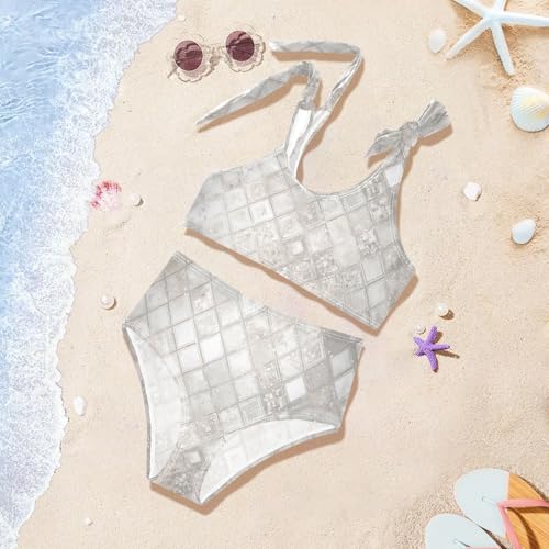 Silver Glitter Pattern Shiny Sparkles Girls' 2 Piece Kids Bikini Set Scoop Neck Bathing Suit Swimwear Cute Shoulder 4