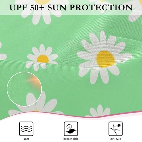 Swim Suit Long Sleeves 1 Piecing Lovely Daisy Floral Green White Rash Guard for Girls Toddler Bathing Suit 7