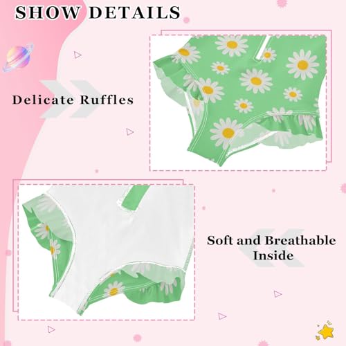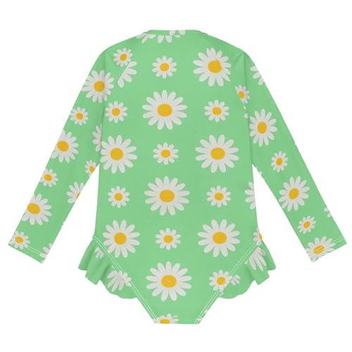 Swim Suit Long Sleeves 1 Piecing Lovely Daisy Floral Green White Rash Guard for Girls Toddler Bathing Suit 6