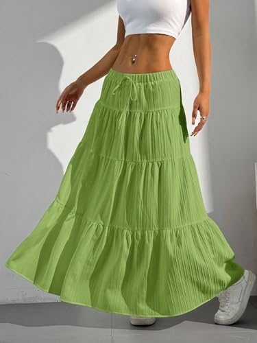 • Beach / Woven Fabric / Layered/Tiered / 98% Polyester, 2% Elastane / No / Casual / Lined / Machine wash or professional dry clean / Tiered Layer, Ruffle Hem / Green / Long / Natural(Mid Waist)