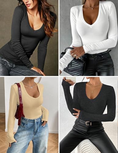 • Various Occassions: The flattering deep V-neck and body-hugging fit add a touch of allure, whether you're dressing up for a night out, date, or party or keeping it chic for work, travel, or casual weekends, this sexy V-neck long sleeve top effortlessly transitions from day to night.