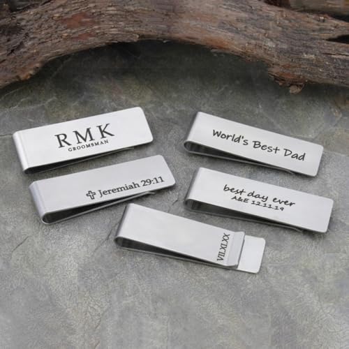 • 1. Personalized Money Clips for Men: Give the perfect gift for any occasion. This stainless steel money clip is a great keepsake that can be personalized in just your perfect way. Father's Day, A Best Man/Groomsman Gift, Wedding Gift, Christmas Gift or Birthday are just a few of these occasions.