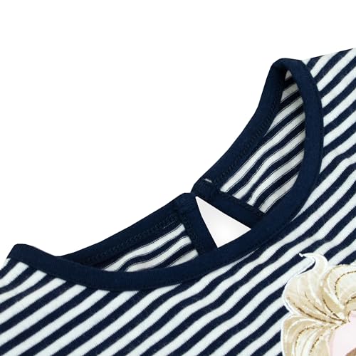 • Detailed and Dazzling Design: This Elsa costume boasts a navy blue and white striped long sleeve top, adorned with a shimmering band of silver glitter. The navy blue skirt sparkles brilliantly, with glittering silver stars dancing across its base, ensuring your little one stands out in any crowd.