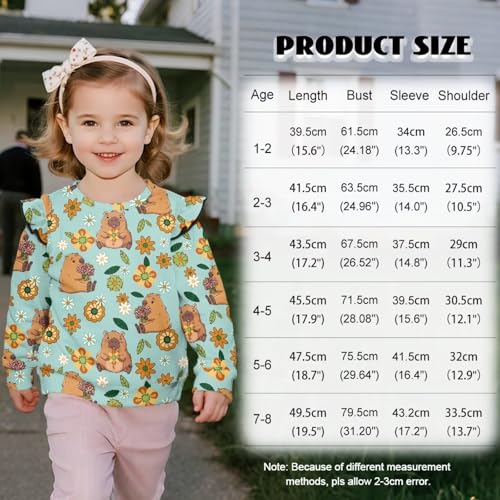 • Unique Design: Long Sleeve, Crewneck, Cute Sweet Style, Regular Fit. Playful ruffle detail at shoulder design add stylish and cute touch to these simple casual tops, the vibrant cute prints enhance visual appeal, make your little angel shine