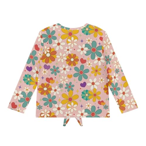 Girls T-Shirt with Tie Front,Loose Long Sleeve Kids Tunic Tops,Stretch Crew Neck Girls Shirt for School 6