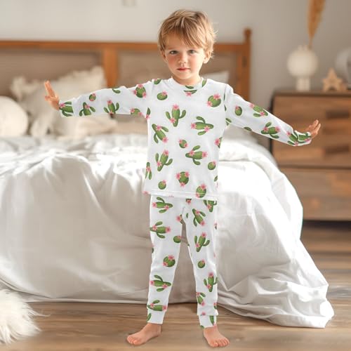 Pajama Sets Long Sleeve Cactus Pattern with Flowers Soft Comfy Sleepwear 2 Piece PJS 3-8T 2