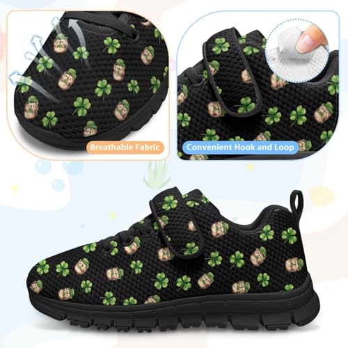 St.Patrick's Day Hedgehog Pattern Little Kid Boys Girls Lightweight Breathable Sneakers Strap Athletic Tennis Shoes for Running Walking 4