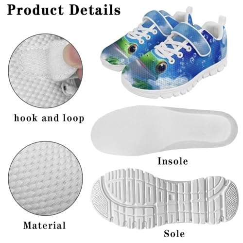 Little Kid Boys Girls Lightweight Breathable Sneakers Strap Athletic Tennis Shoes for Running Walking Frog Pattern(White Sole) 6
