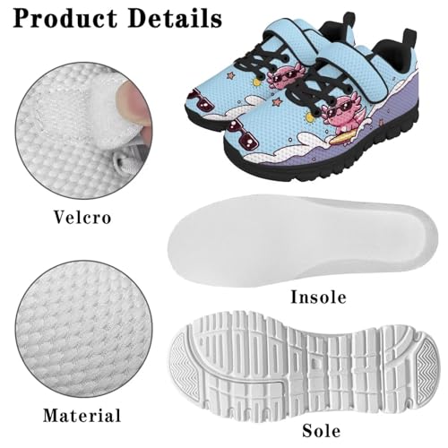 Girls Shoes Non Slip Lightweight Breathable Comfortable Sport Walking Athletic Running Tennis Sneakers (Little Kid) Surfing Axolot Pattern 4