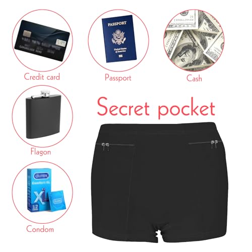 LUEXBOX Pocket Pantie for Women, Travel Underwear with Secret Pocket Panties Women's, 4 Packs (Black) 5