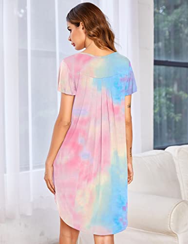 Ekouaer Womens Nightgown Soft Sleepwear Pleated Sleepshirt Sleep Dress Short Sleeve Nightdress S-3XL 4