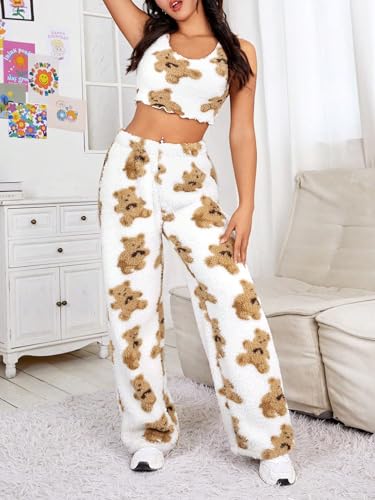 Verdusa Women's Fuzzy Plush Warm Pajama Pants Fleece Lounge Sleepwear Teddy Pj Bottoms 1