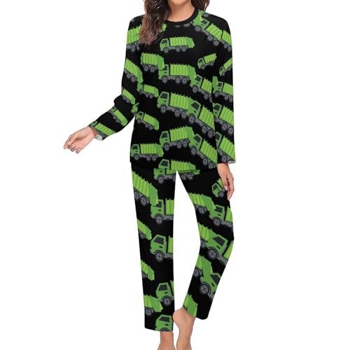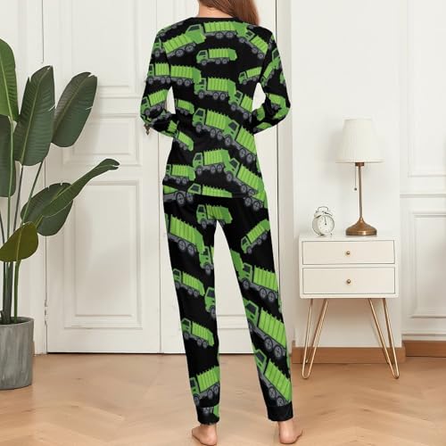 Green Garbage Truck Women's Pajama Sets Long Sleeve Top And Pants Nightwear Pjs 2 Piece 1