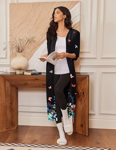 HOT ! Ekouaer Women's Zipper Robe 3/4 Sleeves Housecoat Full Length Nightgown Soft Loungewear Robe with Pockets S-3XL