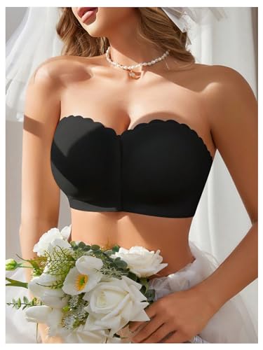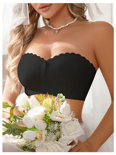 More information about WDIRARA Women's Strapless Front Closure Bra Non-Slip Padded Bandeau Bras Wavy Trim Seamless Tube Top Bralette