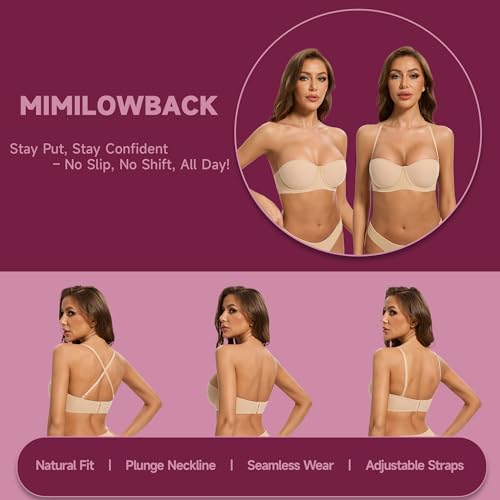 Women's Strapless Bra-Lightly Lined Non Slip Invisible Balconette Underwire Support Multiway Bandeau Bra for Comfort Lift 3
