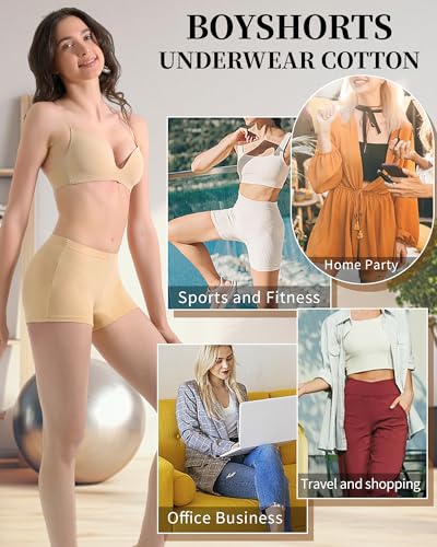 • 🎈【PREMIUM COTTON, COMFORT FOR ALL-DAY】 Womens boyshorts underwear crafted from 95% breathable cotton and 5% stretchy spandex, these women's boxer briefs deliver a soft, non-see-through fit that moves with you. Whether you're at work, relaxing at home, or on the go, these comfy underwear for women provide flexible support without restriction