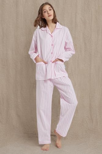HOT ! GLOBAL Women's 100% Cotton Pajama Set|Long-Sleeved with Pants PJs |Button Down Front Top&Drawstring Waist Bottom Nightwear