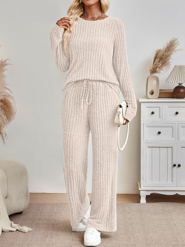 • Occasions:The lounge set features long sleeve oversized top and high waist wide leg long pants.2 piece sets matching sweatsuit is perfect for daily wear,work,home,lounging,travel,and school