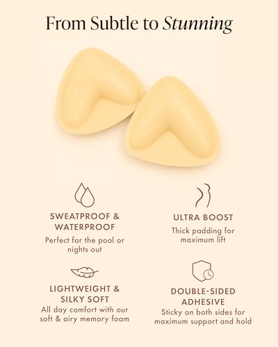 • Sweatproof, Waterproof, Ultra-Comfy: Feel confident and comfortable when wearing our sticky inserts. Whether you're out in your favorite clubbing dress or needing a push up bikini top, we've got you covered. Made with ultra-comfy memory foam, you won't even remember you're wearing them.