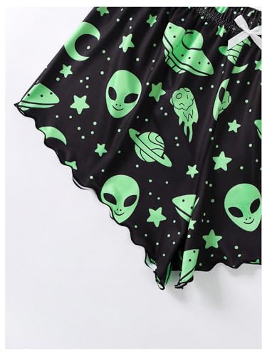 WDIRARA Women's 2 Piece Sleeveless Pajama Set Alien Graphic Sleepwear Crop Cami Tops and Shorts Pjs Sets 3