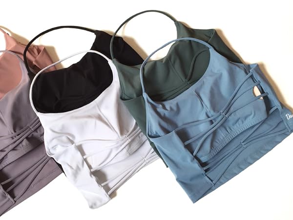 Danysu Womens Backless Halter Crop Top Padded Sports Bras Light Support Strappy Sexy Workout Tank 5