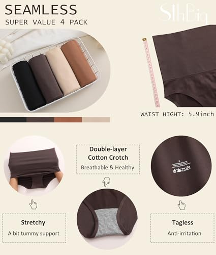 Women's High Waisted Tummy Control Underwear Panties Compression Slimming Seamless Briefs Shapewear 4 Pack 1