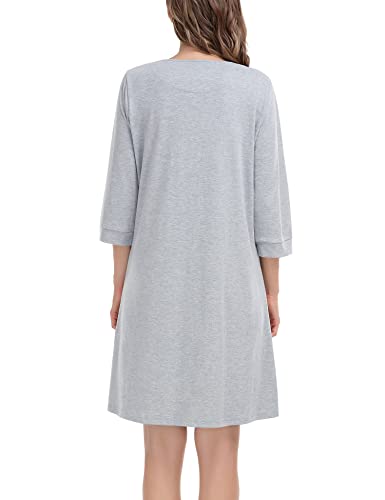 SWOMOG Women Zip Up Robe 3/4 Sleeve Housecoat Soft Cotton Zipper Front Nightgown Loungewear with Pockets 3