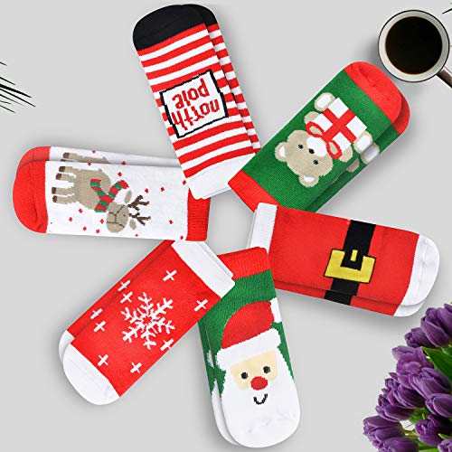 SQMCase Kids Christmas Socks, Colorful Fun Novelty Crew Patterned Children Cotton Socks for Boys Girls, 6-Pair (4-6 Years) 5