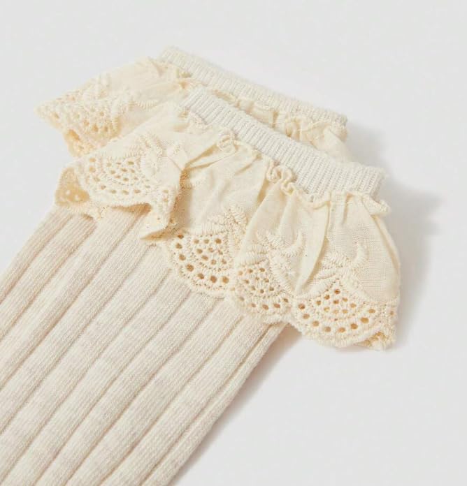 • ELEGANT DESIGN: Beautiful floral lace trim detail at the top adds a sweet, feminine touch to these classic ribbed knee-high socks