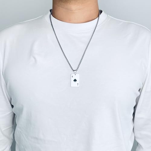 Ace Necklace for Men and Women Ace of Spades Heart Ace Poker Necklace 24 Inches Stainless Steel Chain 5