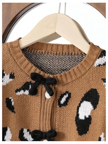 WDIRARA Girl's Leopard Print Sweater Cardigan Cute Bow Long Sleeve Crewneck Button Knit Cardigans 6