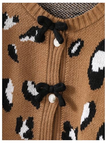WDIRARA Girl's Leopard Print Sweater Cardigan Cute Bow Long Sleeve Crewneck Button Knit Cardigans 1