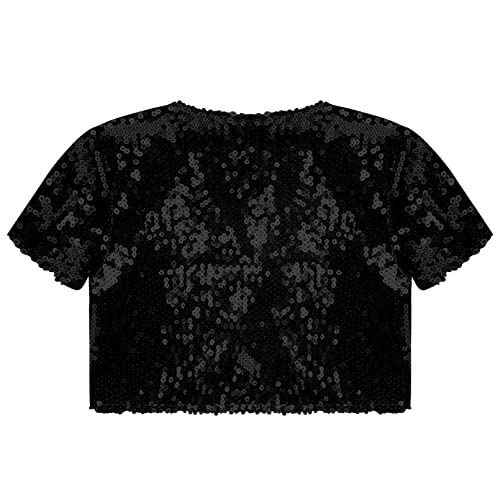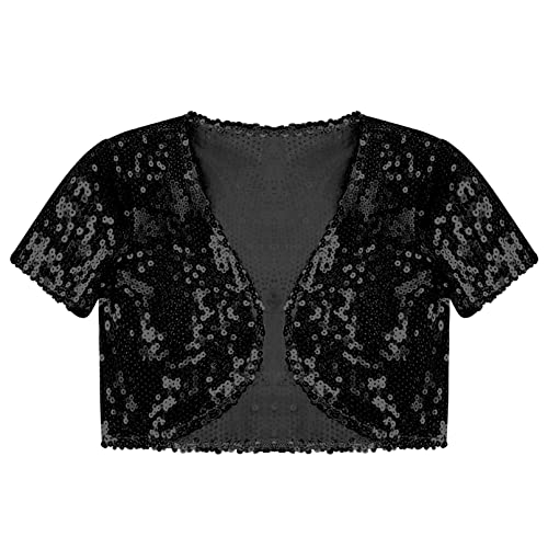 Kids Girls Cropped Bolero Cardigan Glitter Sequin Shrug Casual Short Sleeve Open Front Blazer Jacket 6