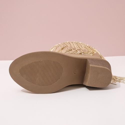 Girls Winter Low Heels Princess Boots Tassel Sequin Mid Calf Riding Shoes 6