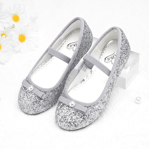Stelle Girls Glitter Dress Shoes Flower Wedding Mary Jane Ballet Flats with Strap Toddler/Little/Big Kids 7
