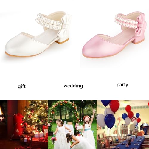 • Easy to wear girls shoes:The High heels with velcro so easy wear, bow and pearl strap design.