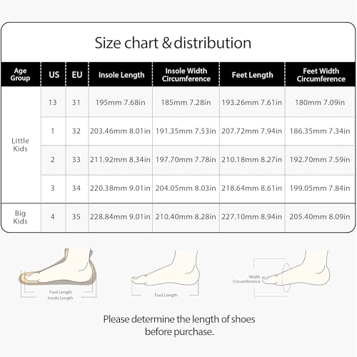 • Perfect Fit for Growing Feet: We offer our size chart to ensure that you could choose a perfect size for your little ones.