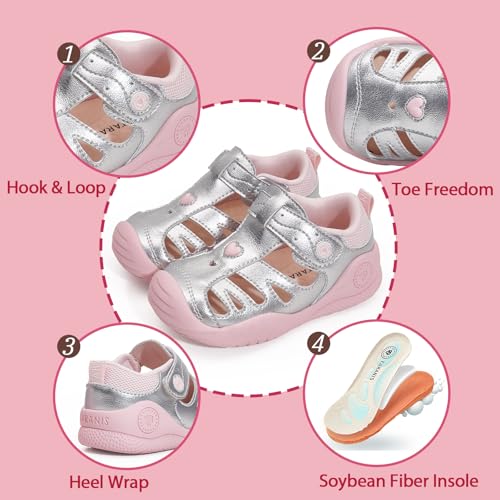 • Protective Toe Cap : Stylish metallic elements of these kids’ sports sandals are complemented with a closed-toe design that keeps feet safe and the toe cap design protects toes