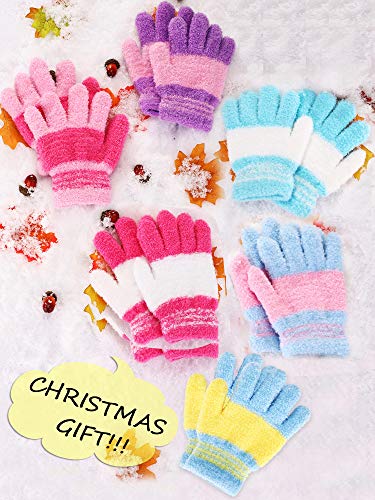 6 Pairs Kids Gloves Full Finger Knitted Thermal Gloves Winter Warm Mitten Boys Girls 6
