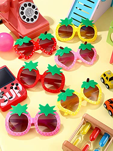 Weewooday 6 Pairs Kids Sunglasses Party Strawberry Pineapple Shaped Sunglasses Cute Round Funny for Toddler Kids Boys Girls 6