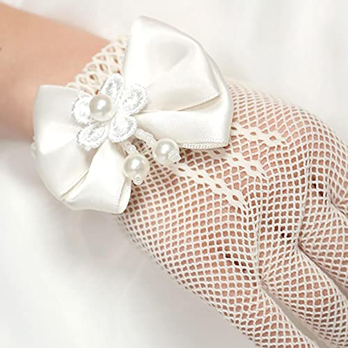 AKOAK 1 Pair Girls Net Bow Lace Pearl Embellished Gloves, Stage Show/Party Supplies/Wedding Flower Girls/Ceremony Coronation Accessories 1