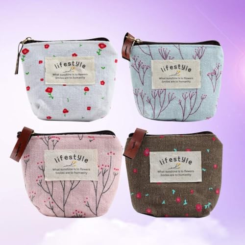 4Pcs Colour Coin Purse, Mini Canvas Change Purse Coin Pouch with Flower Pattern, Portable Purse Holder Girls with Zipper for Cash, Coin, Keys, Credit Card, ID Card Wallets and Money Organizers 4